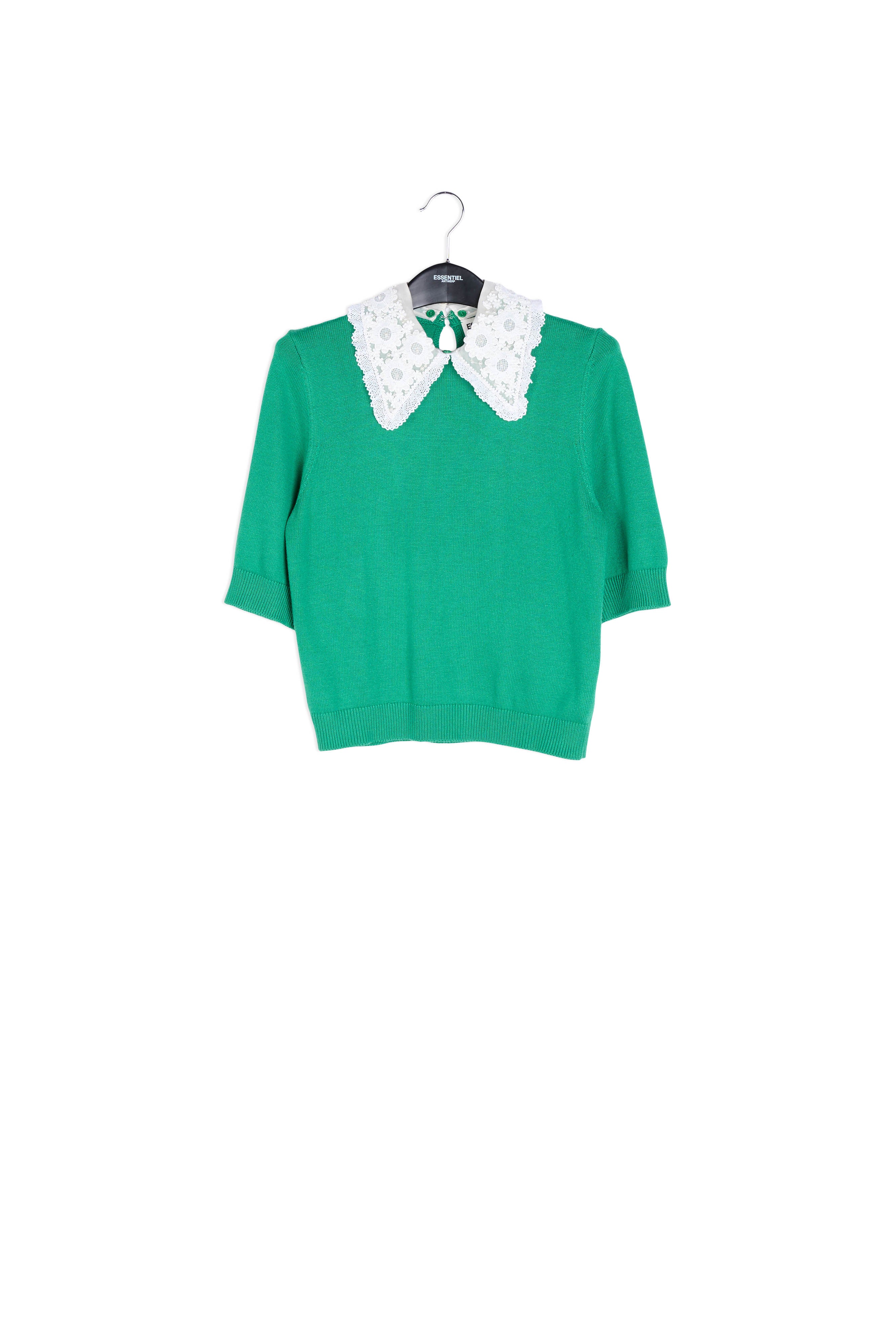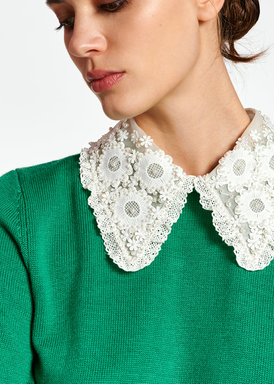 Green sweater with lace and pearl-embroidered collar RE—SSENTIEL | Essentiel second hand