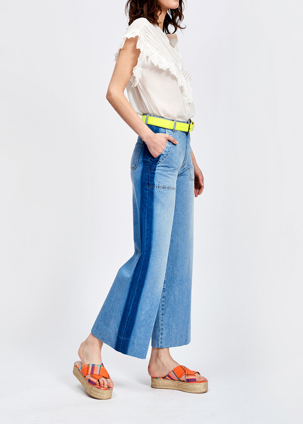 Stone washed blue wide jeans with side stripe RE—SSENTIEL | Essentiel second hand