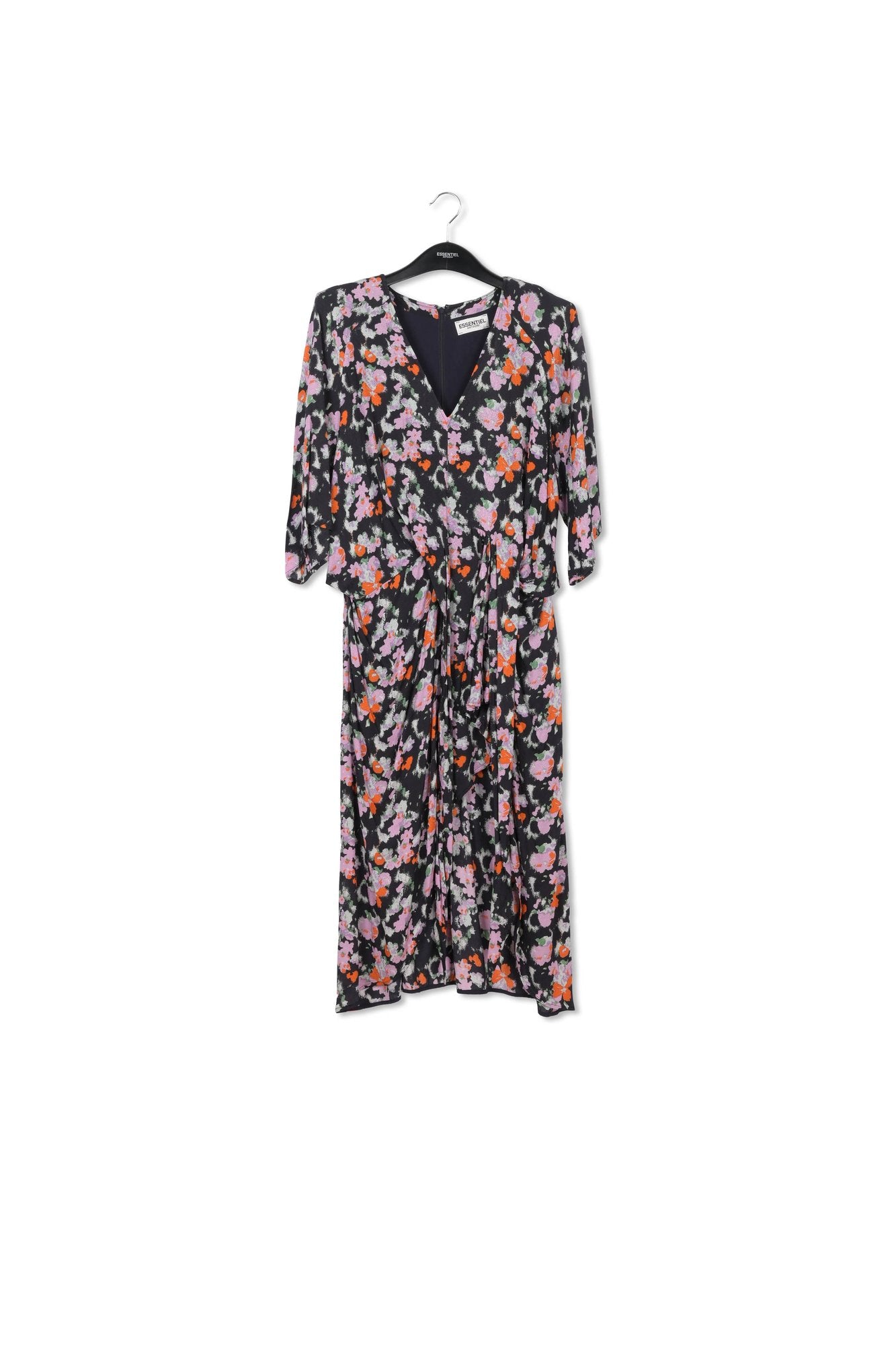 Dark blue midi-length floral print dress RE—SSENTIEL | Essentiel second hand