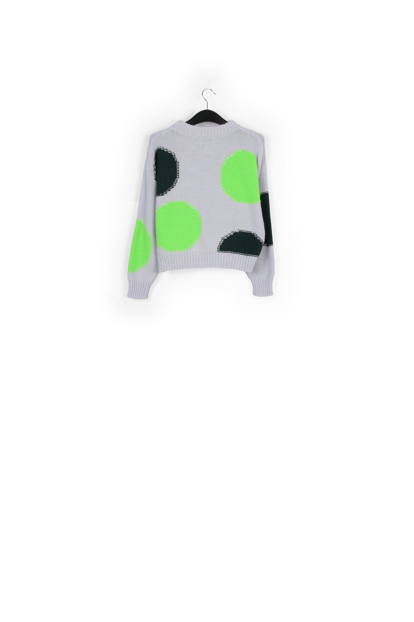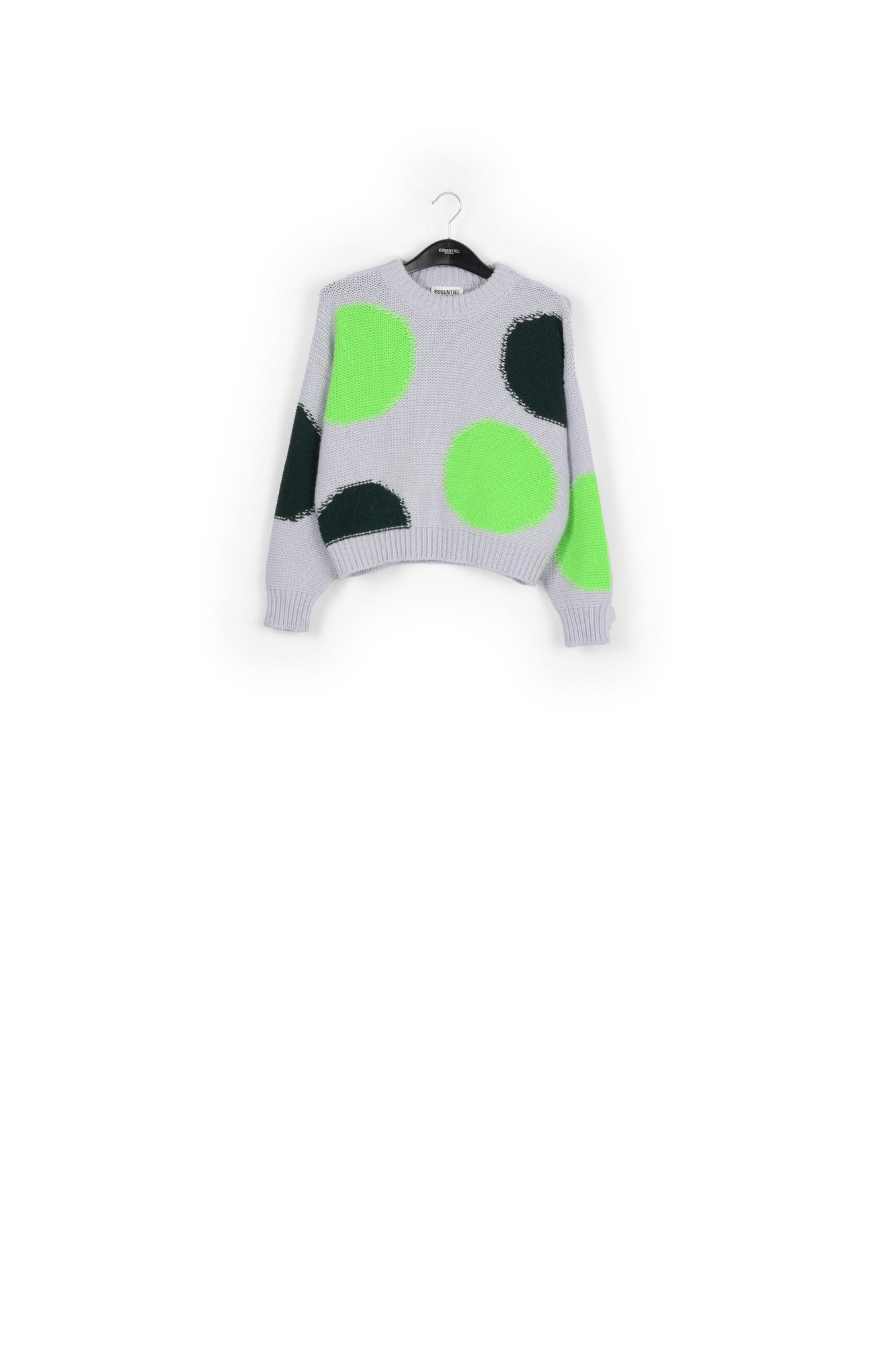 Grey, neon green and black intarsia-knitted sweater RE—SSENTIEL | Essentiel second hand