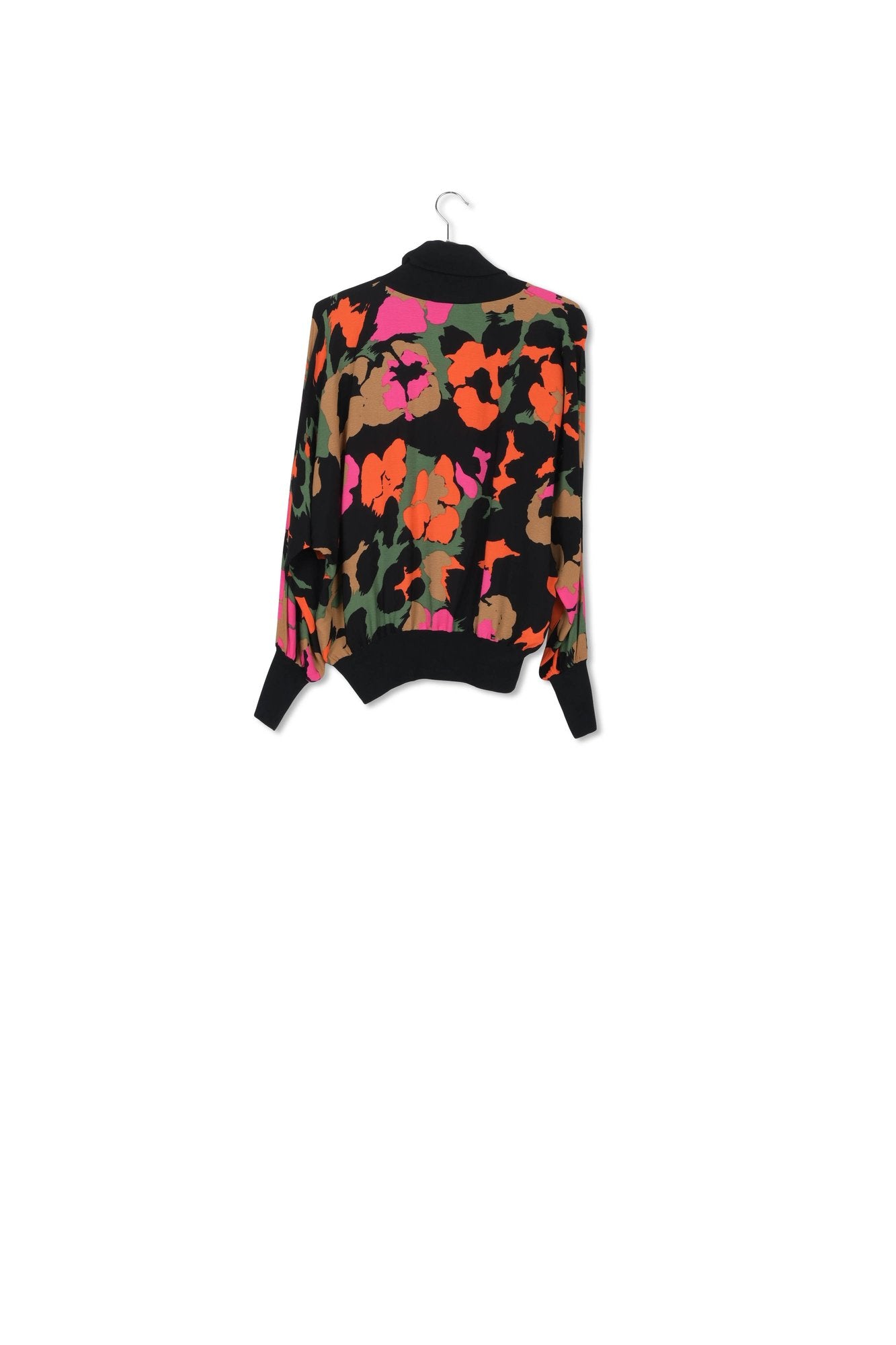 Black abstract-print top with rib-knitted trims RE—SSENTIEL | Essentiel second hand