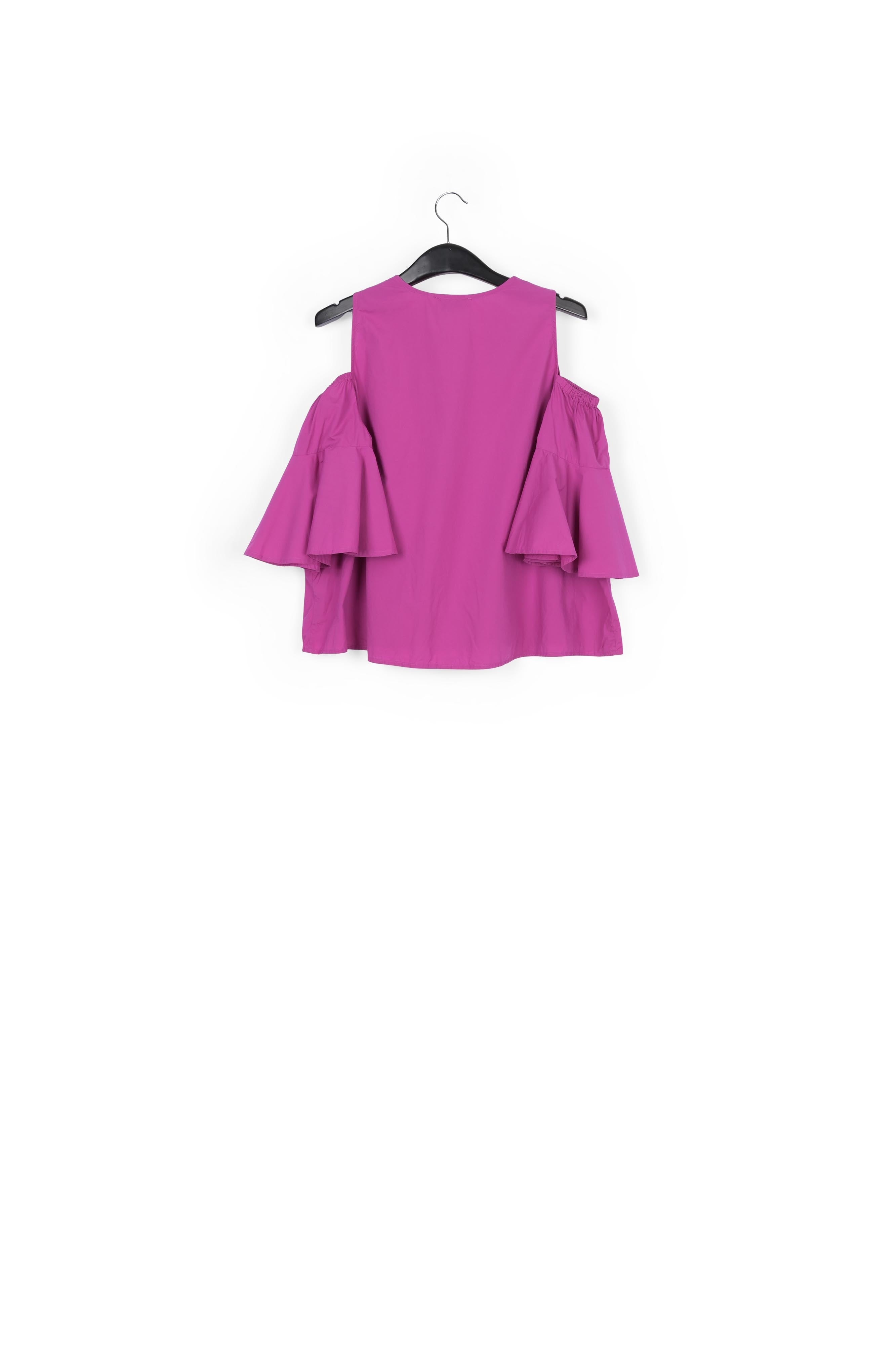 Réalisé en popeline en coton, ce top oversize arbore des découpes aux épaules et des manches 3/4 à volants. 100 % coton Tissu léger non extensible Se porte oversize Découpes aux épaules Manches 3/4 à volant Pourpre; sku: DYLE; material: 100% coton