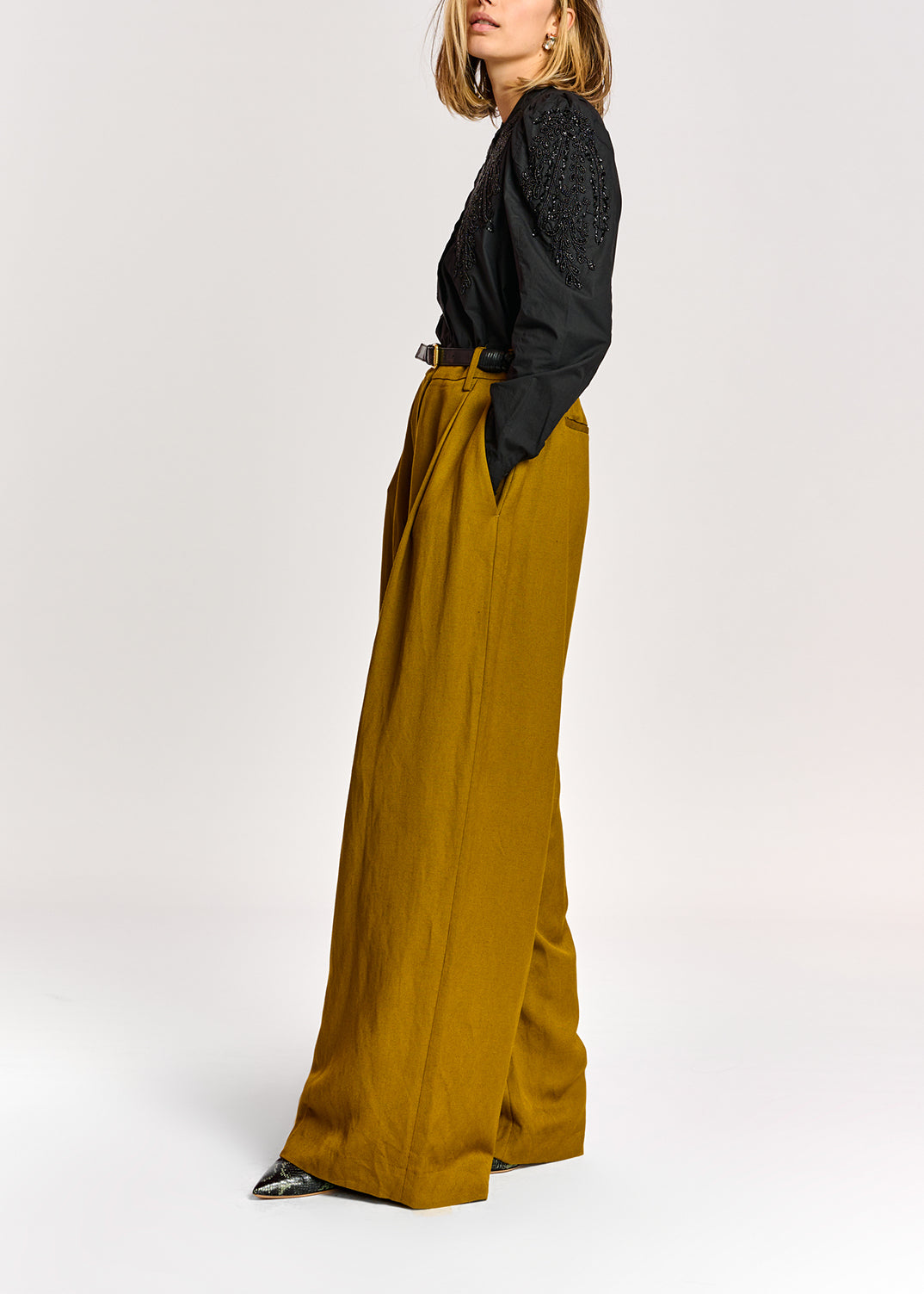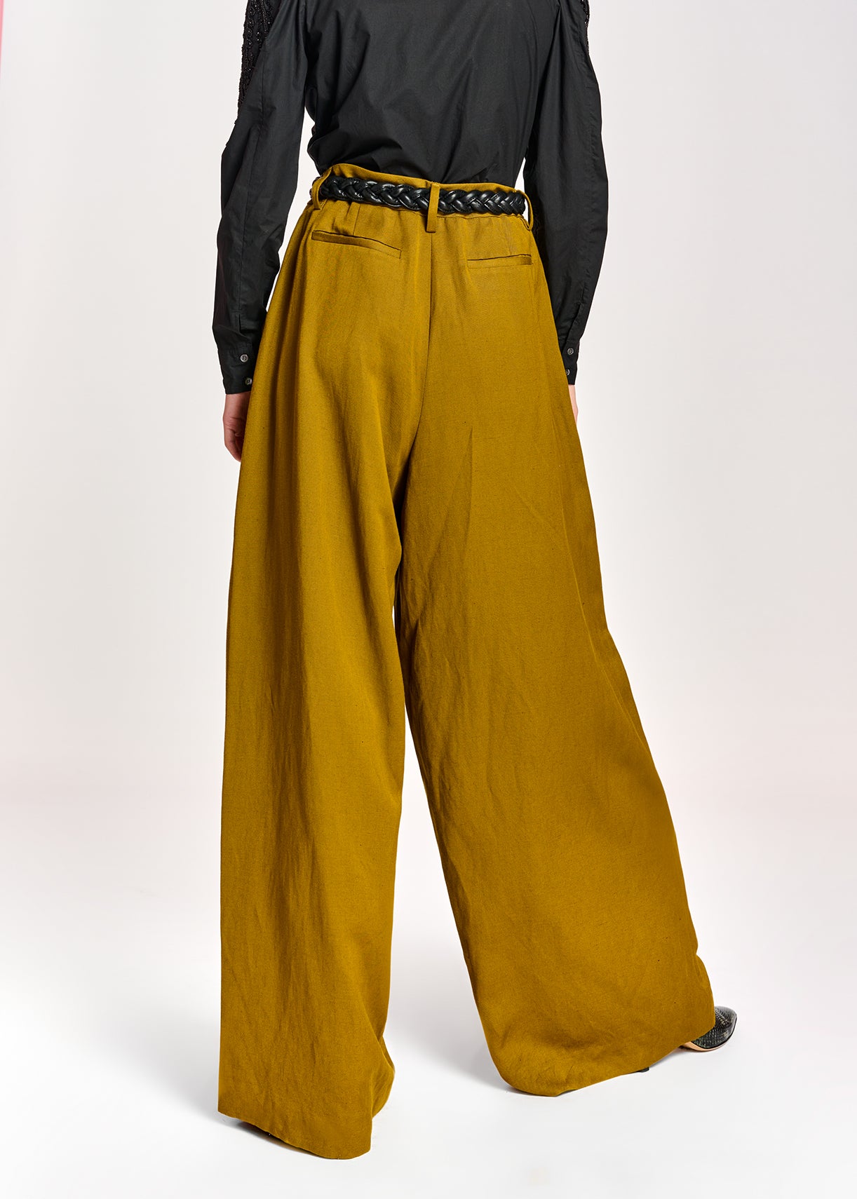 Pantalon brun aux jambes larges; sku: AROUND; material: 76% viscose 24% de lin // doublure de poche: 100% viscose