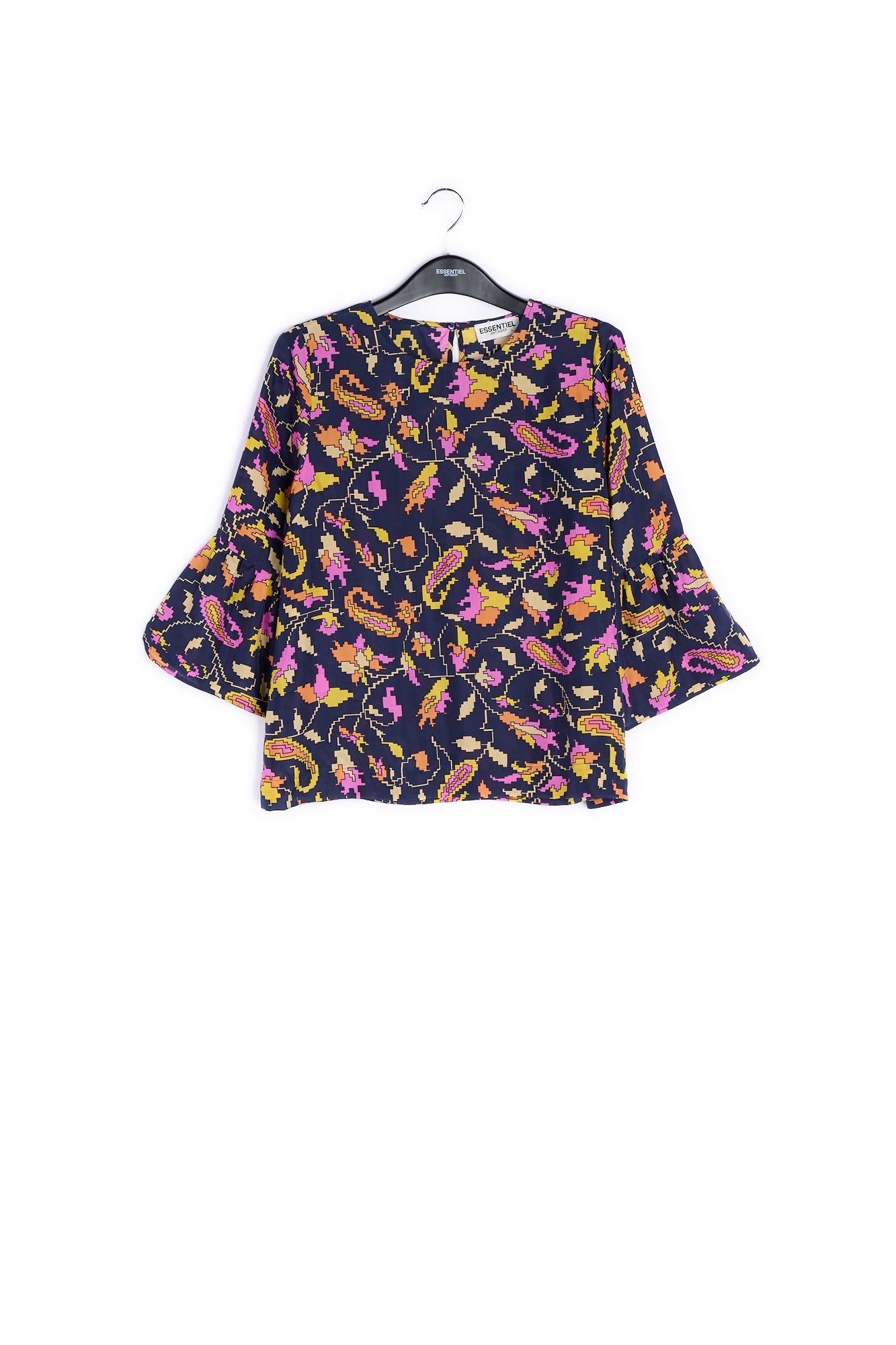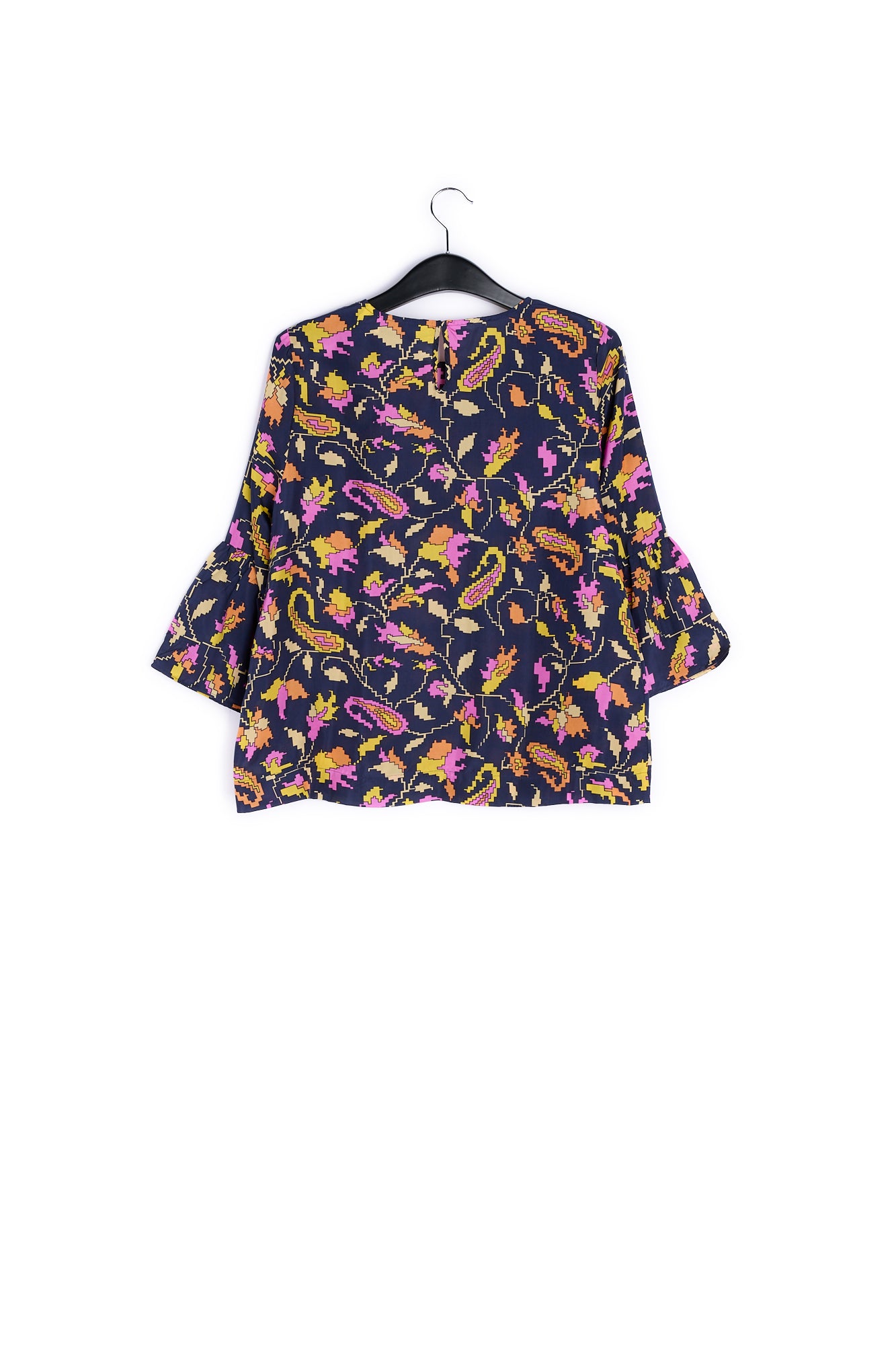 Ce top à imprimé floral et graphique a une coupe ample et confortable, qui accentue vos formes féminines grâce aux fléchettes bien réfléchies. les manches évasées et la soie somptueuse ajoutent une dose de féminité et de légèreté à ce look. combinez-le avec différents pantalons et imprimés contrastants.; sku: RIDGY; material: 100% soie//doublure: 100% viscose