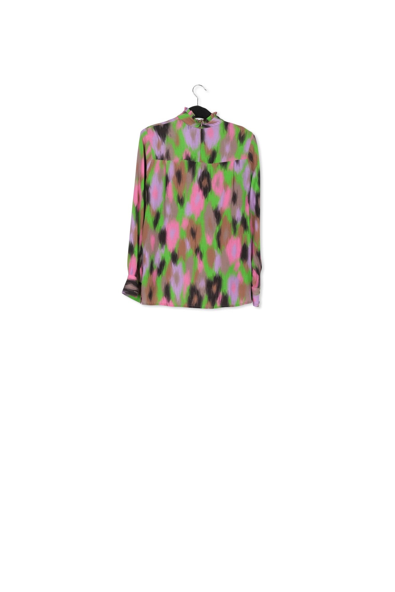 Top vervaardigd van een lichte stof, beprint met een opvallend motief. De relaxte snit is voorzien van golvende mouwen die samenkomen in keurige manchetten en van een hoge halslijn afgewerkt met een volantboord.; sku: EPHRAIM-E1GK-34; material: 100% viscose