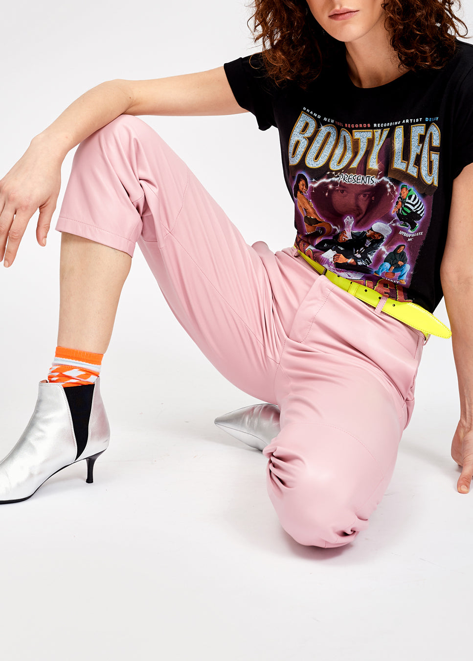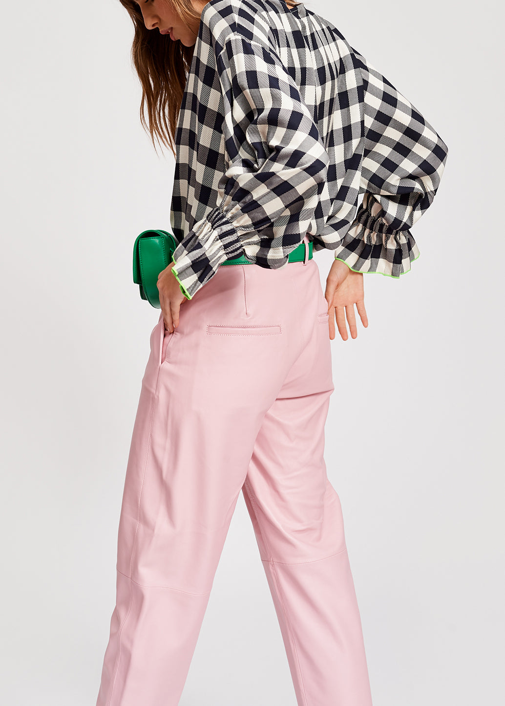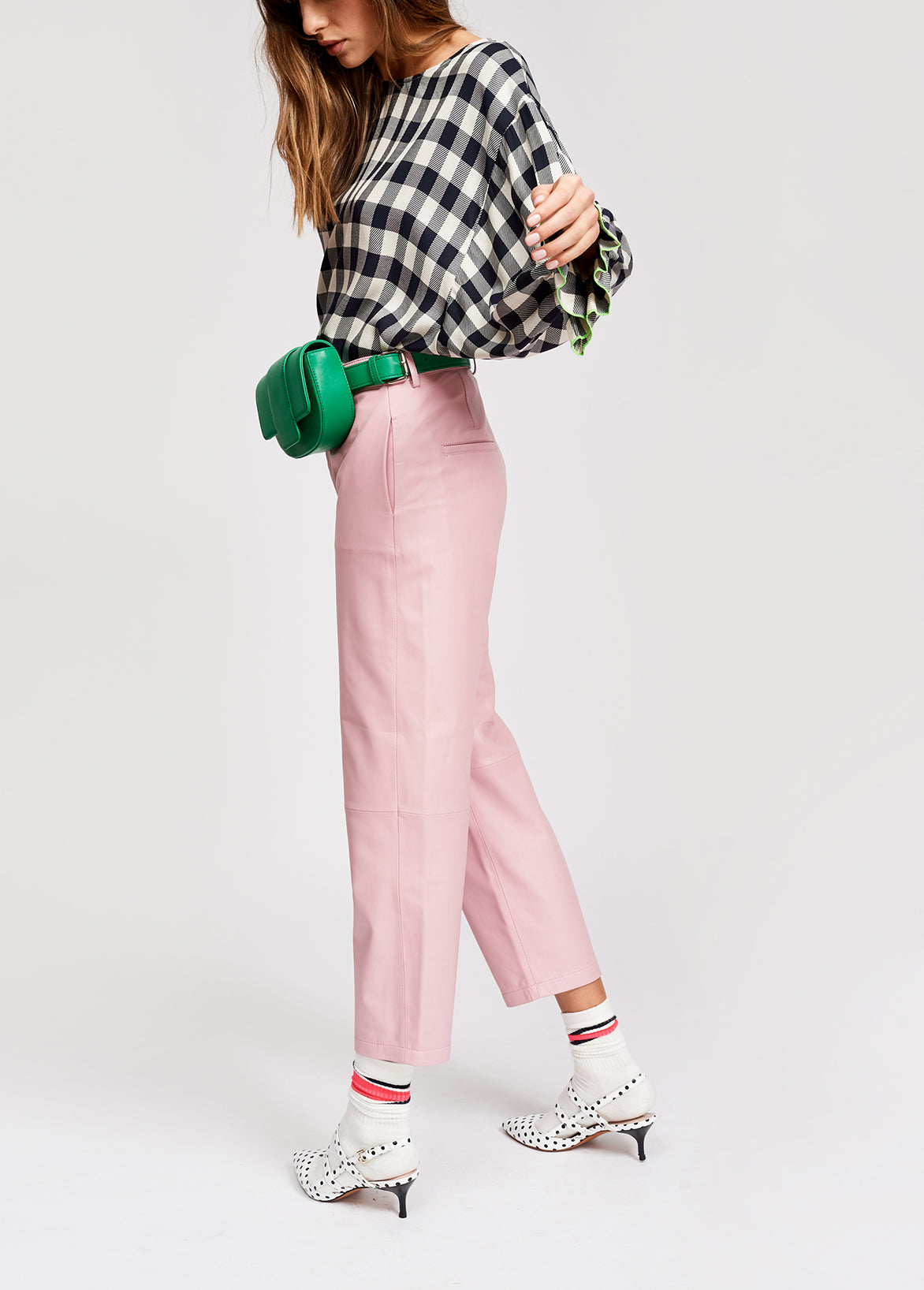 Pale pink leather cropped trousers; sku: SHAME; material: 100% lamb leather//lining: 100% polyester