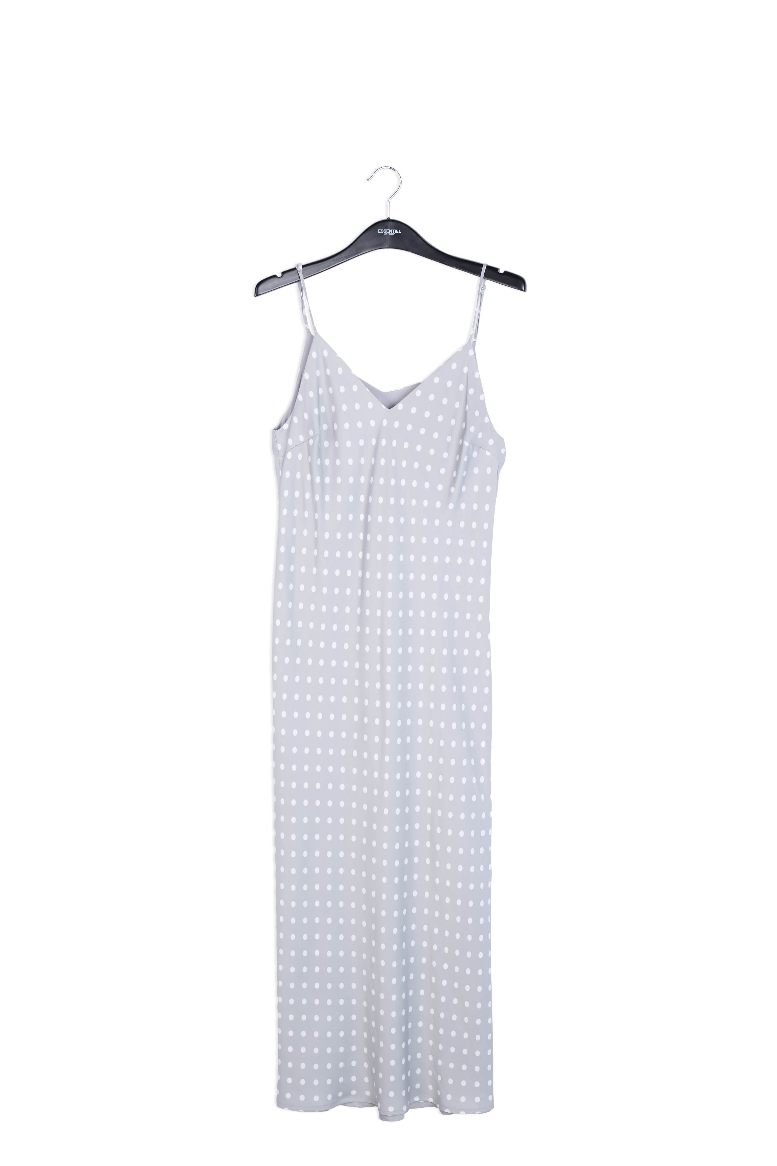 Grey polka dot slip dress; sku: VEVA; material: 100% polyester//lining: 100% viscose