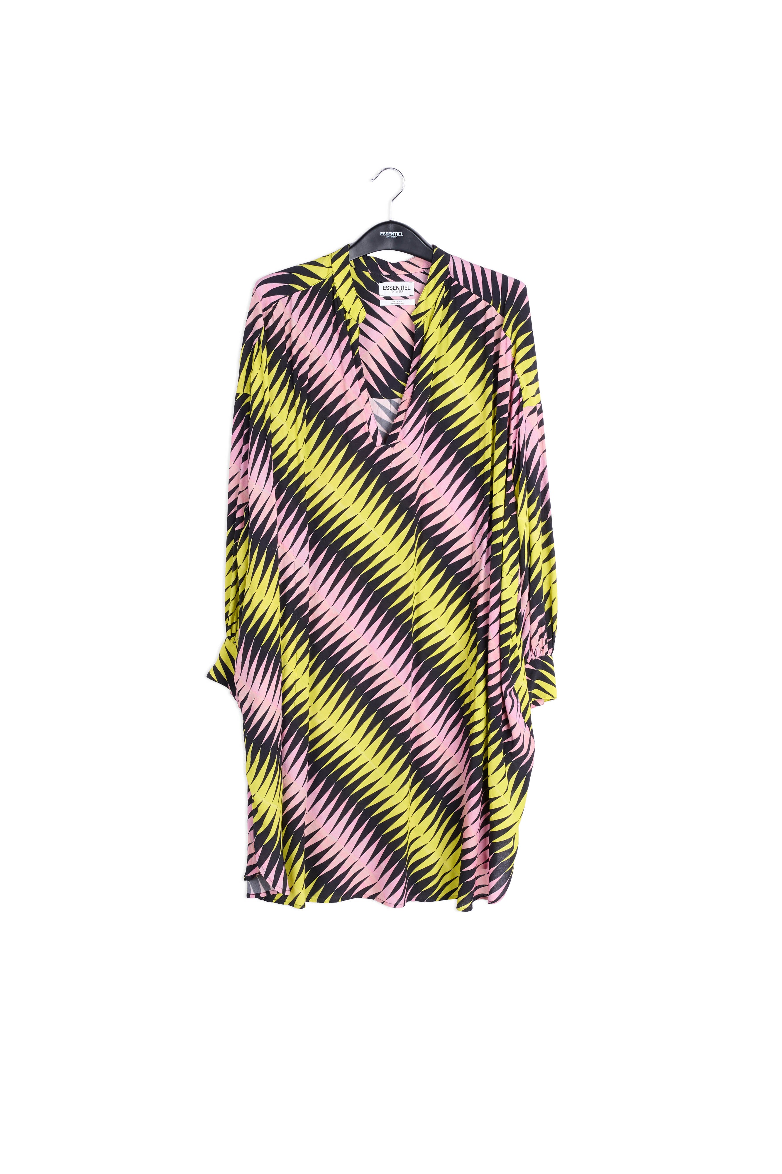 Pink, black and yellow graphic print knee-length dress RE—SSENTIEL | Essentiel second hand